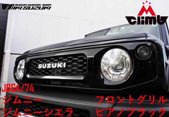 エムクライムオリジナル ジムニー フロントグリル スズキオプション ピアノブラック 塗装 BKVer JB64 JB74 対応